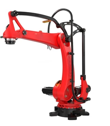 Robots de 4 Ejes: Los robots de 4 ejes son ideales para tareas sencillas y precisas. Su diseño compacto y eficiente les permite realizar movimientos básicos en un espacio reducido. Son perfectos para aplicaciones en ensamblaje, paletizado y manejo de materiales ligeros o pesados, donde se requiere velocidad y precisión.